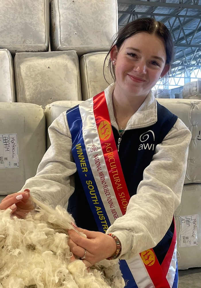Young Tasmanian student Olivia Baker is the winner of the 2025 National Merino Fleece Young Judges Championships, held at the Royal Adelaide Show recently.